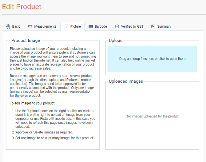 There are 2 ways you can add a photo of your product - directly through Barcode Manager or use GS1 Picture It!