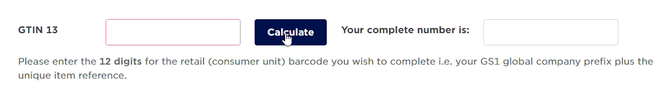 - On the Check Digit Calculator, Company A will type 539123456046 into the spot for the GTIN 13 and click Calculate to get the check digit. The final number will be 5391234560466.