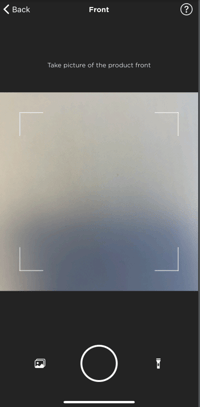 After you scan the barcode, you can start taking photos of your product. The first photo you will be asked to take is a picture of the front of your product. When you are ready, click the button at the bottom of the screen.