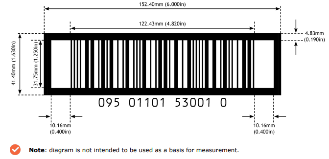 Below you can find a diagram showing the measurements for an ITF-14 barcode symbol based on the nominal X-dimension 1.016 mm (0.0400 in.).